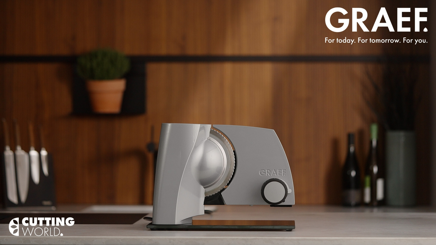 Die perfekte Scheibe – Sie ist das Ergebnis eines sauberen Schnitts in gleichmäßiger Stärke. Sie ist die Essenz und zugleich das Fundament für einfachen und schnellen Genuss im Alltag und der Beginn von echter Aromen-Entfaltung. Genieße die kräftigen Röstaromen der Brotkruste, die cremige Würze deines Lieblingskäses oder die sanften Buchenholznoten des Schinkens, frisch geschnitten auf deinem ESSENCE Allesschneider von GRAEF. Dieser leistungsstarke Küchenhelfer vereint einen kraftvollen Antrieb, eine scharfe Universalklinge und präzise einstellbare Schnittstärke mit Leichtgängigkeit und intuitiver, sicherer Bedienung – die GRAEF-Essenz des Schneidens, der Kern unserer Sache.