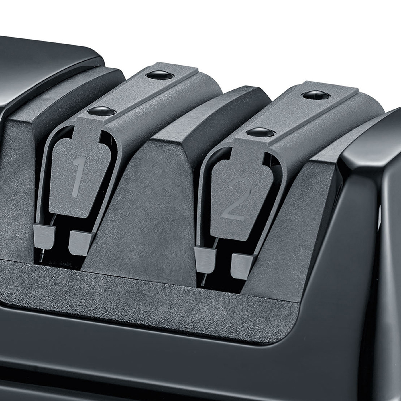 - Two-stage sharpening: sharpening with either a 15° or 20° angle, honing and polishing with ceramic discs