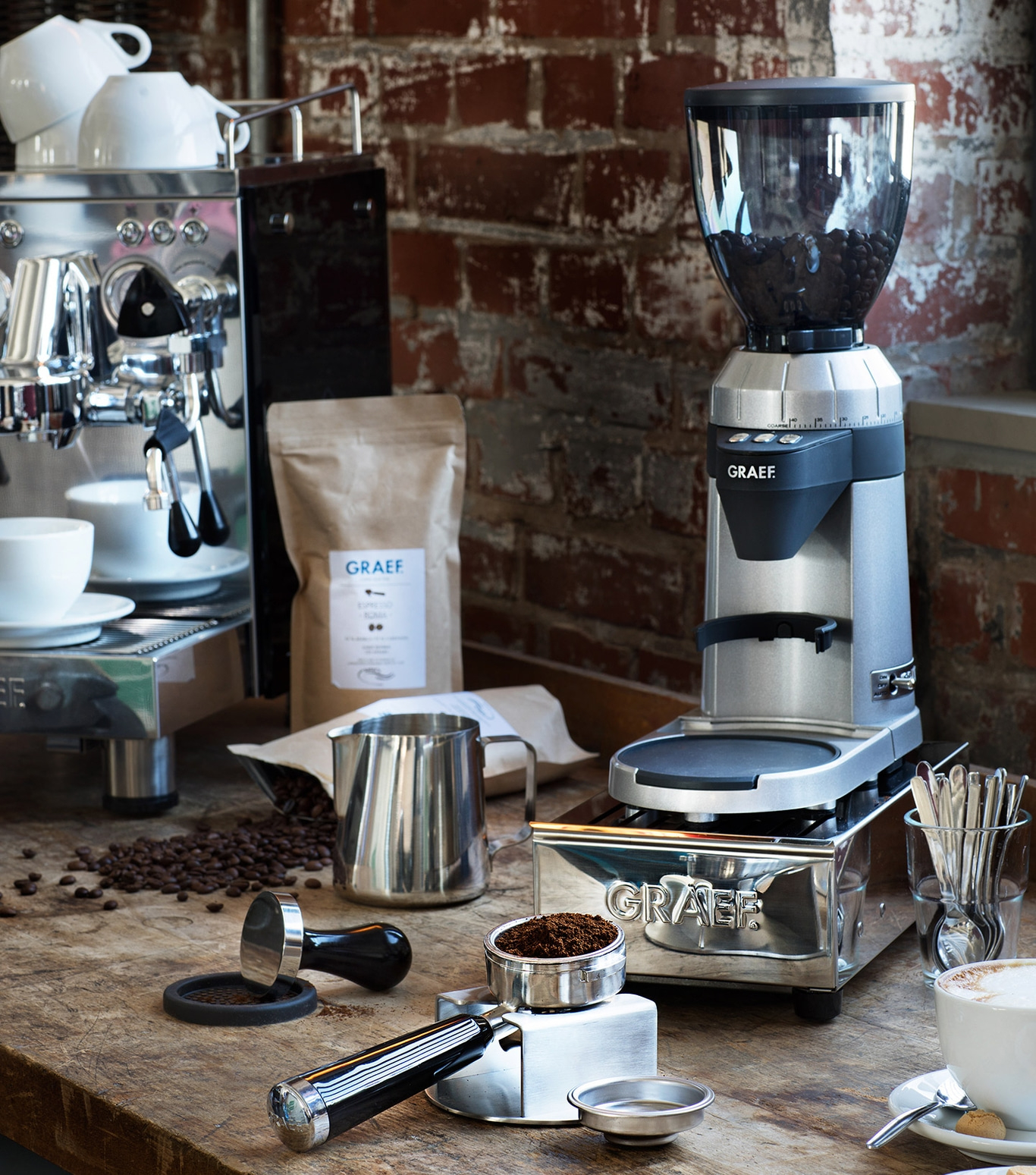 Only with this special quality of coffee grounds an espresso machine can get the full aroma out of the Caffè. Graef's electric coffee grinders are powerful direct grinders that immediately fill the caffè into the filter after grinding. If this is then also inserted into a portafilter espresso machine from Graef, you have the optimum pressure, the exact temperature, the right amount of coffee and everything done right.