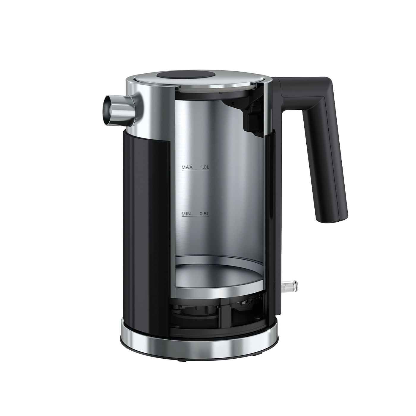 Außengehäuse aus Acryl, schwarz Doppelwandiger Edelstahlwasserkocher: innerer Behälter aus Edelstahl |