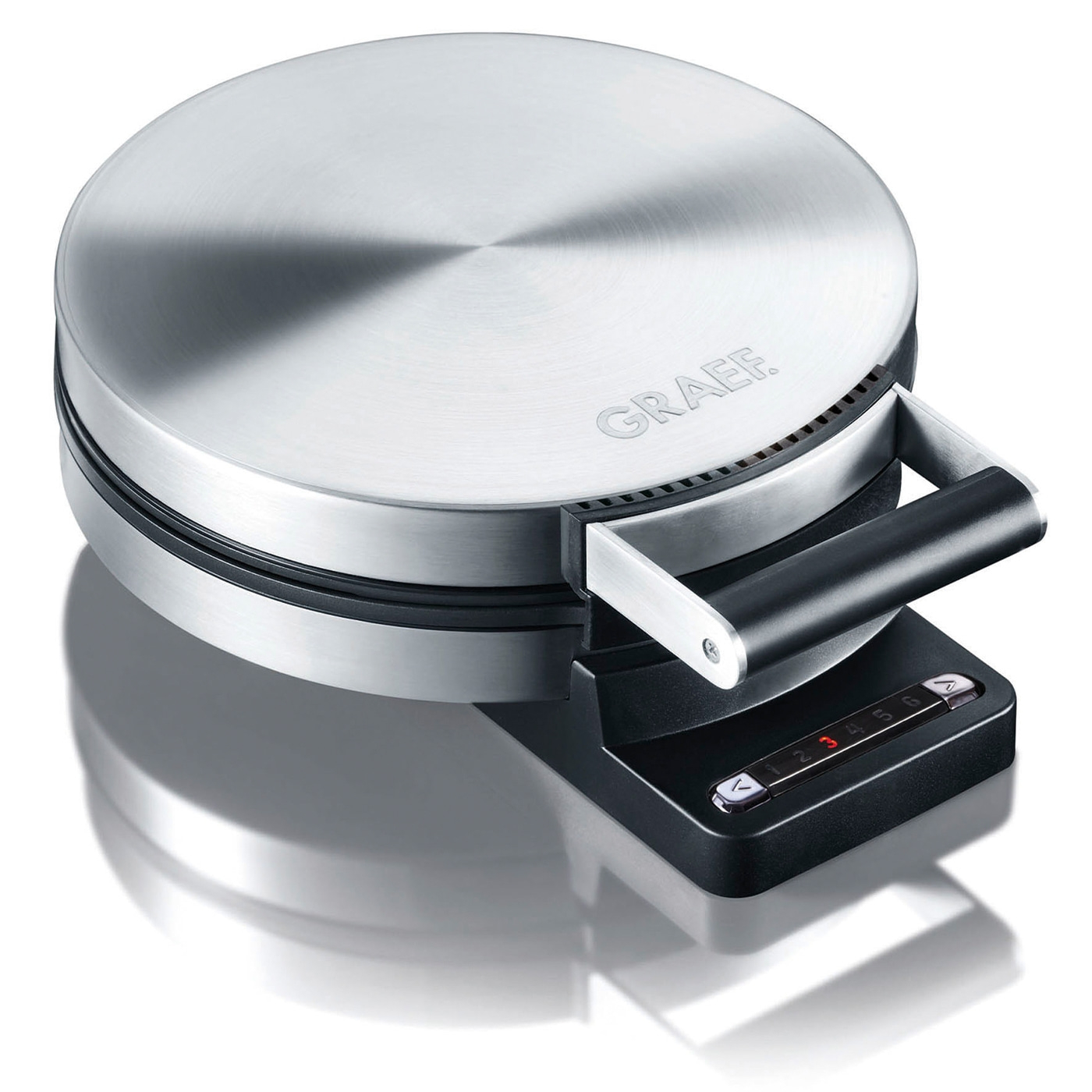 GRAEF a également pensé à tout pour le processus de cuisson proprement dit : 6 niveaux de brunissement différents peuvent être réglés confortablement via le panneau de commande et le signal visuel et sonore vous informe également que la gaufre est prête.