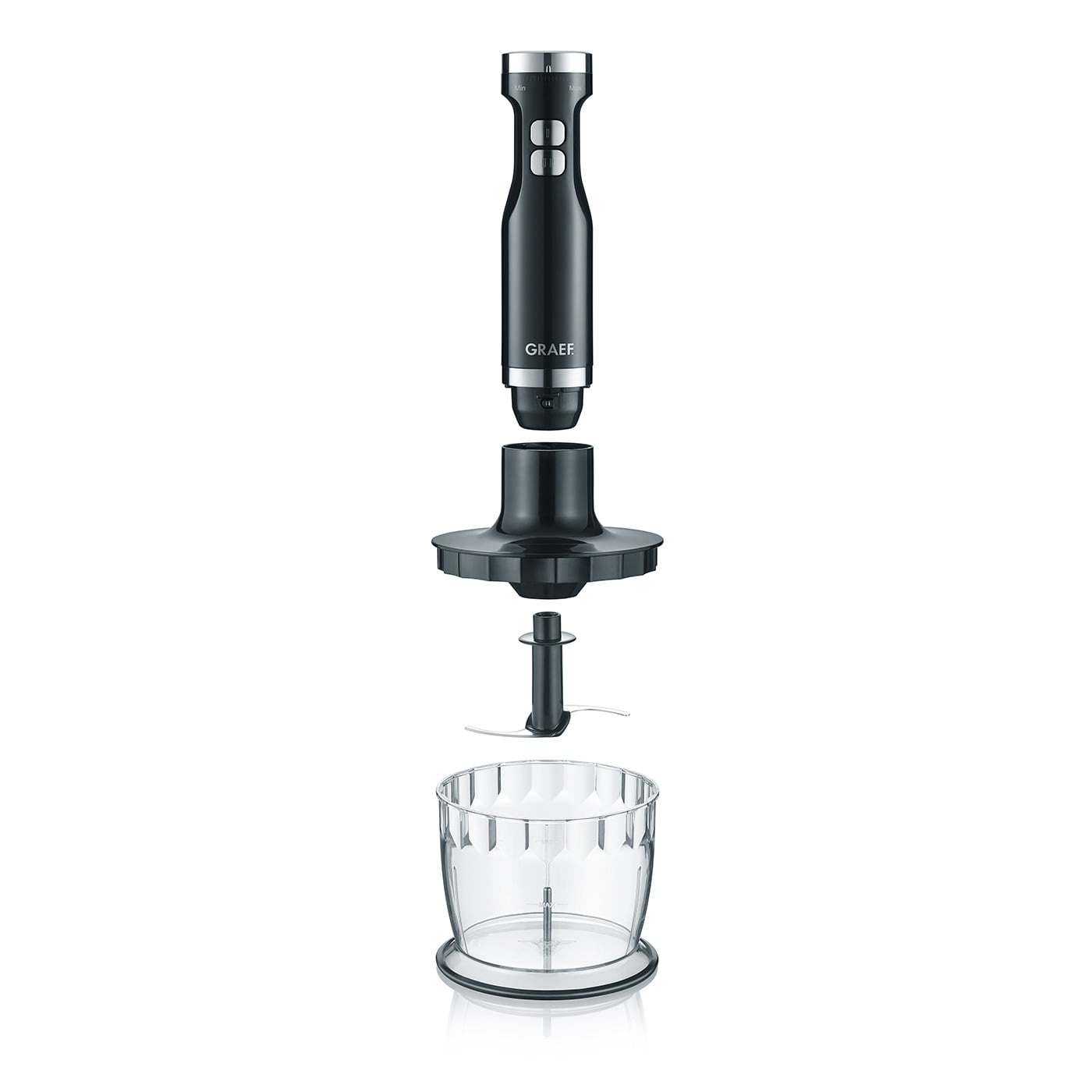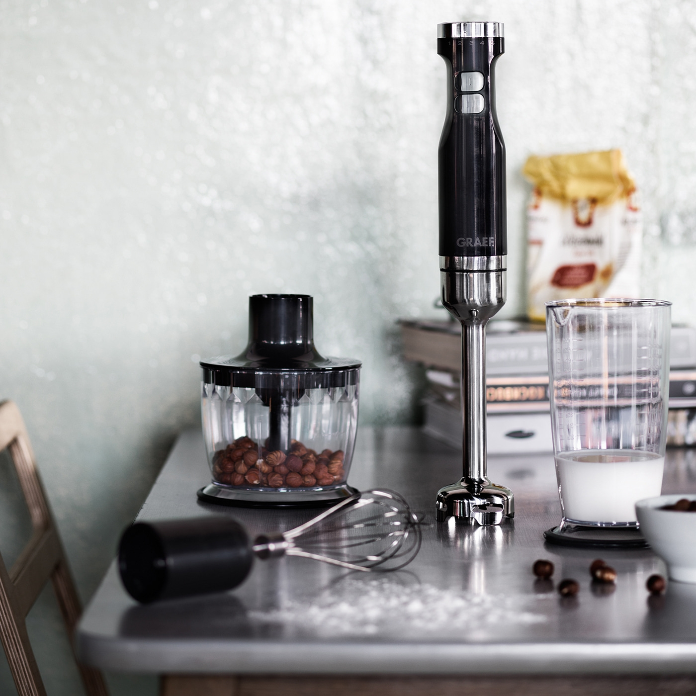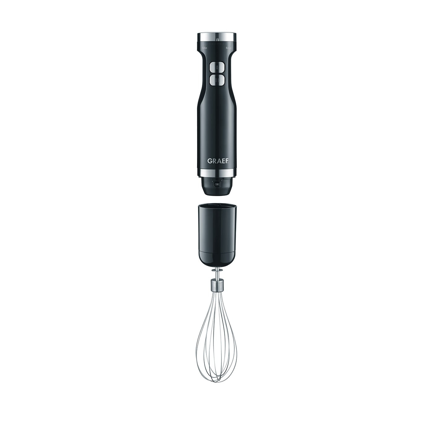 Enfin, le travail dans la cuisine devient un plaisir avec le mixeur plongeant de GRAEF : le boîtier en plastique de haute qualité en noir est de forme ergonomique et s'intègre parfaitement à toute cuisine.