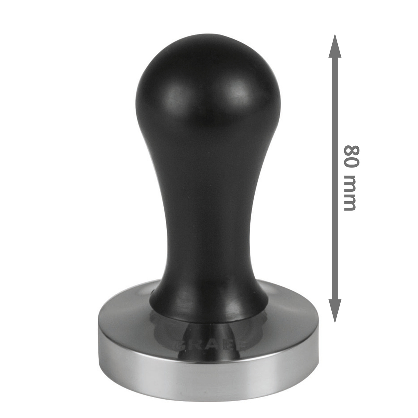 - Der ergonomische Griff aus schwarz lackierten Aluminium hat eine Griffhöhe von 80 mm (Gesamthöhe des Tampers: 96,75mm) und bietet optimale Griffigkeit für große Hände.