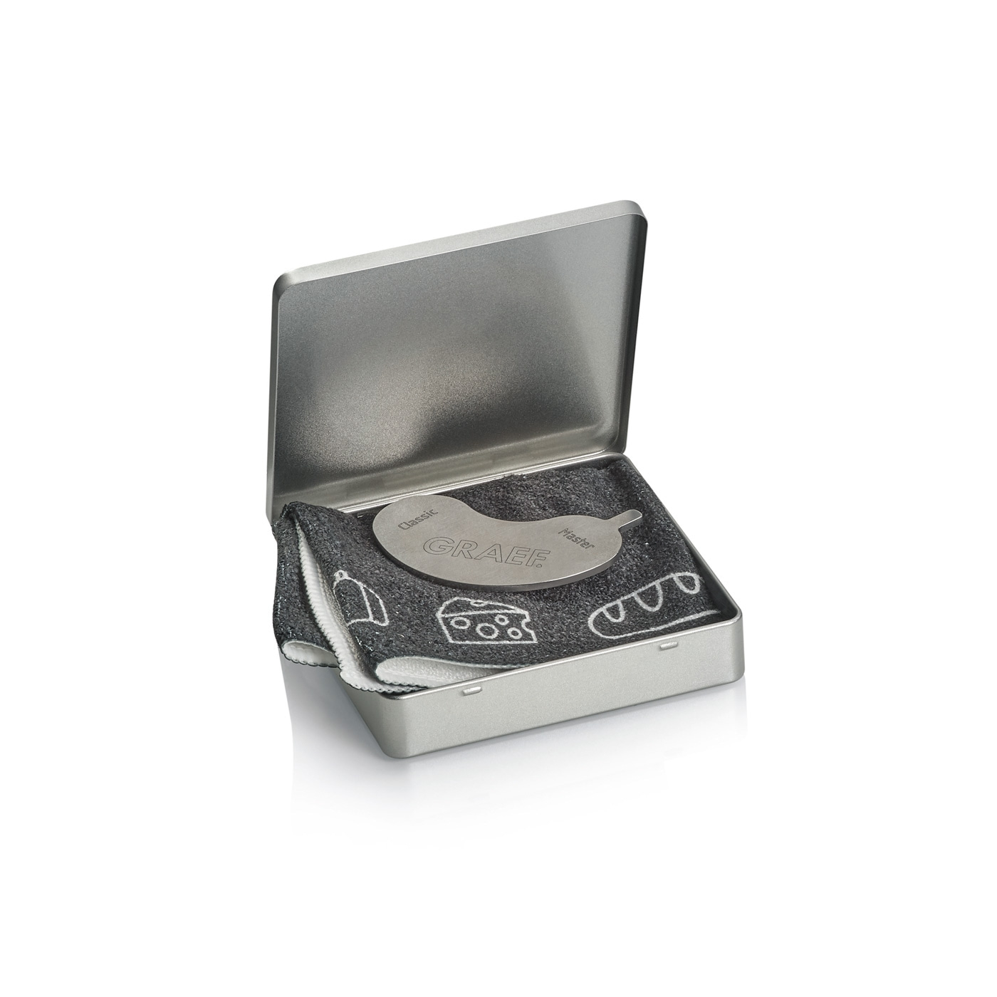 Pour faciliter le nettoyage du MASTER M94F, un kit d'entretien comprenant un chiffon en microfibres, un ouvreur pour la vis du couteau et de la vaseline est également inclus dans une boîte métallique de haute qualité.