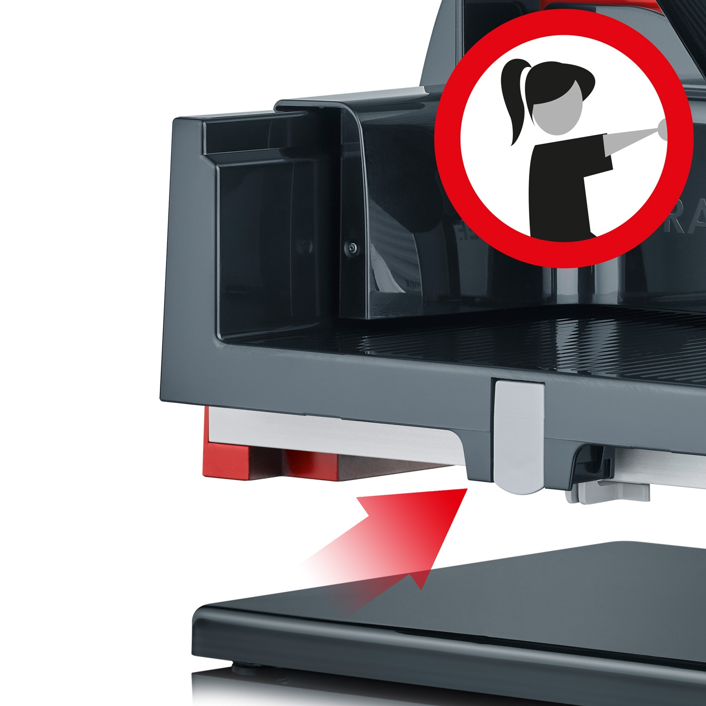 Couteau à lame ondulée polyvalent en acier inoxydable, Ø 170 mm Pied de support Plaque de couverture de la lame Protection pour enfants Réglage en continu de l'épaisseur de coupe |