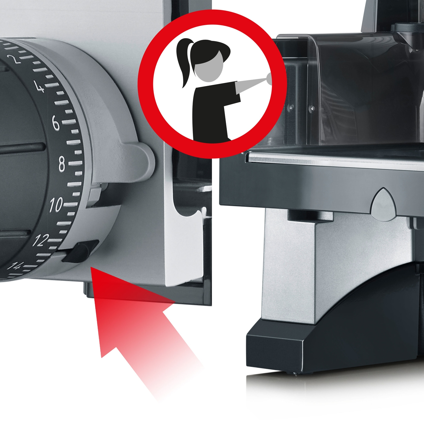 L'épaisseur de coupe extra large, jusqu'à 30 mm, est une aide précieuse pour les petits pains du petit-déjeuner, par exemple. Grâce à l'élément de commande centrale de l'épaisseur de coupe et à l'interrupteur momentanée &continue, vous avez tout en un seul appareil.