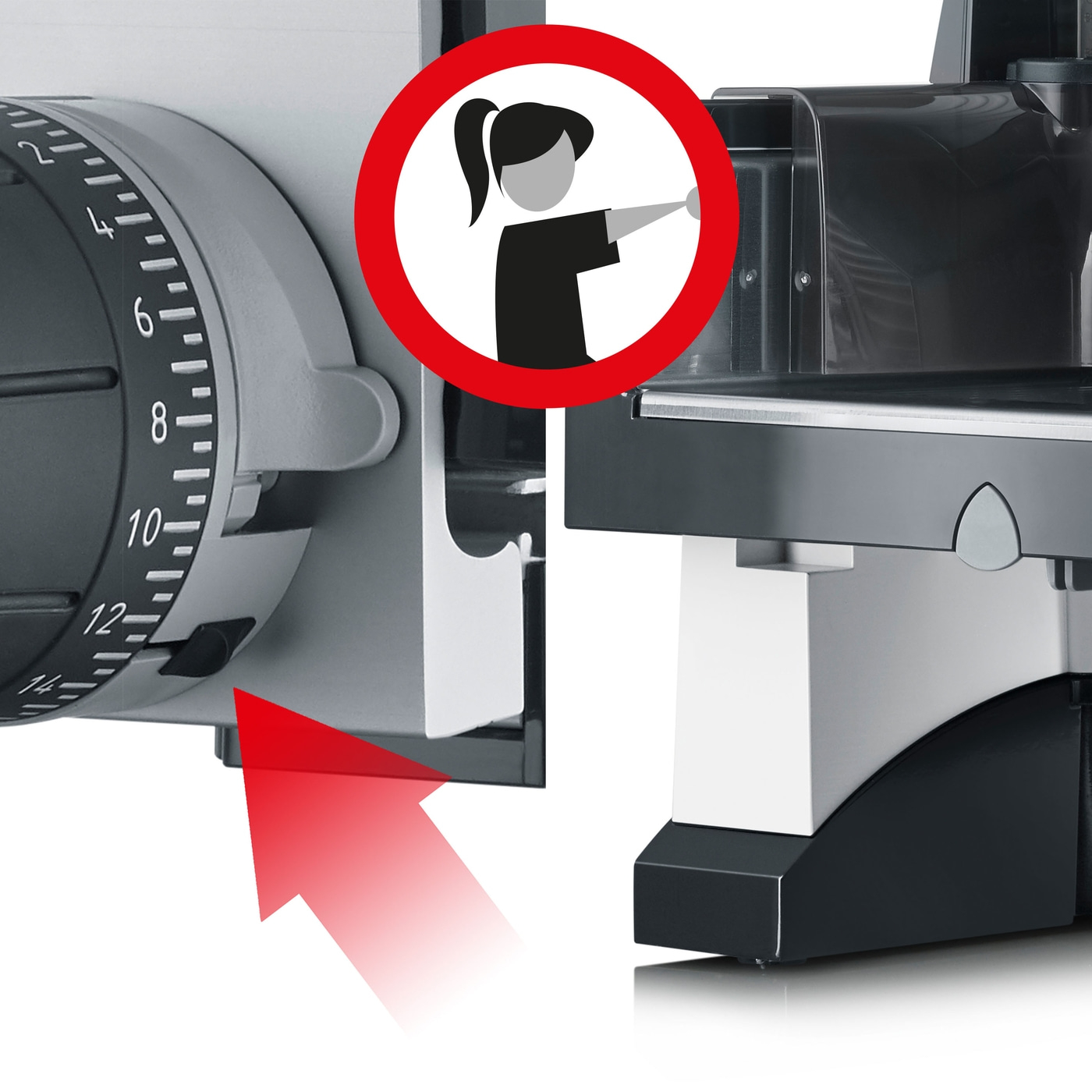 L'épaisseur de coupe extra large, jusqu'à 30 mm, est une aide précieuse pour les petits pains du petit-déjeuner, par exemple. Grâce à l'élément de commande centrale de l'épaisseur de coupe et à l'interrupteur momentanée &continue, vous avez tout en un seul appareil.